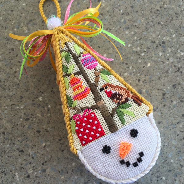 I loved working on this ornament so much that we’ve kitted a limited number at Needlepoint.Com and turned it into an online class. The kit comes with a handpainted canvas, all of the threads you will need to complete the project and a stitch guide. It also includes access to technique videos that you can watch over and over again. It’s the perfect little project to squeeze in before the finishing deadlines hit!